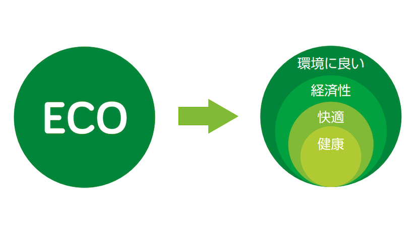 そのため、環境に良いとか経済性が良いなど2つの『エコ』をイメージさせるので、エコ住宅の本質が見え難くなっています。