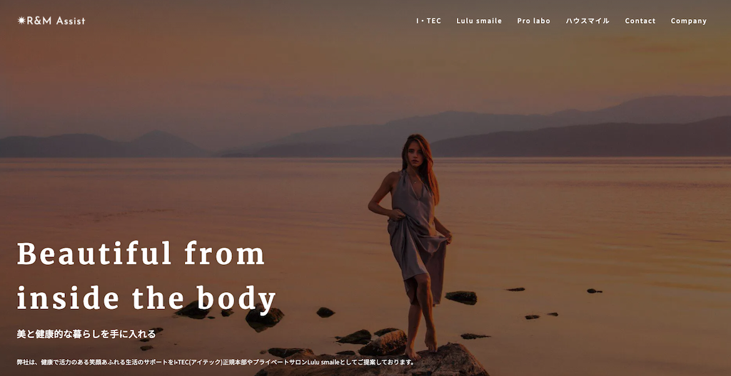 『再生』をテーマに、長年に渡る独自の研究開発を軸に医療技術を応用し、その中でもとりわけ『幹細胞』を中心に商品開発を行っているアイテックインターナショナルの正規本部をはじめ、完全予約制のエステサロンLulu smaileの運営や、数多くの雑誌でも取り上げられているプロ・ラボ(Pro labo)の取り扱いなど、健康的な暮らしをトータルプロデュースするアールアンドエムアシスト株式会社。