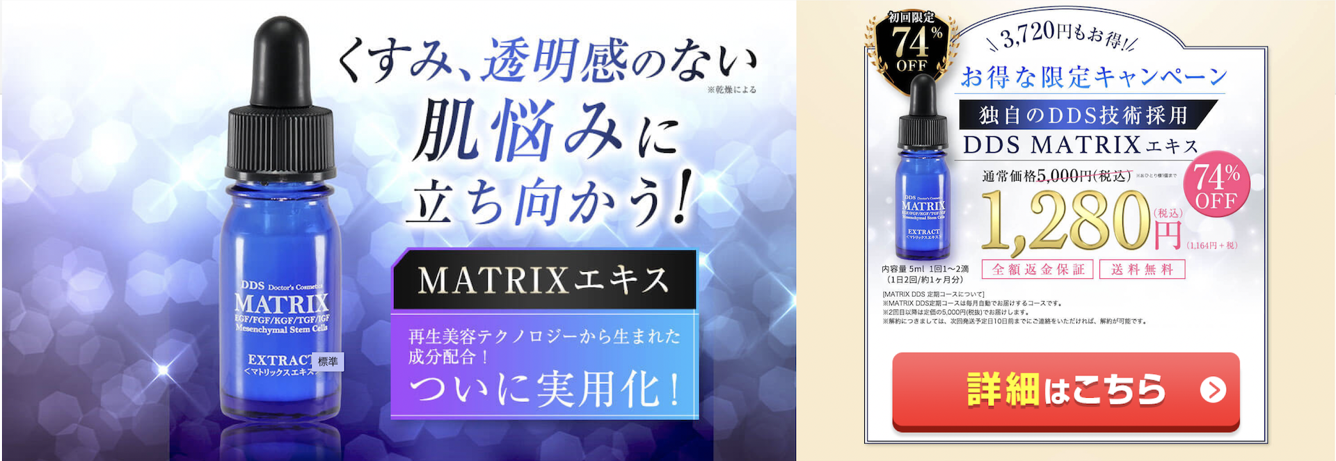 現在、通常5,000円のマトリックスエキスが1,280円になるキャンペーン中!