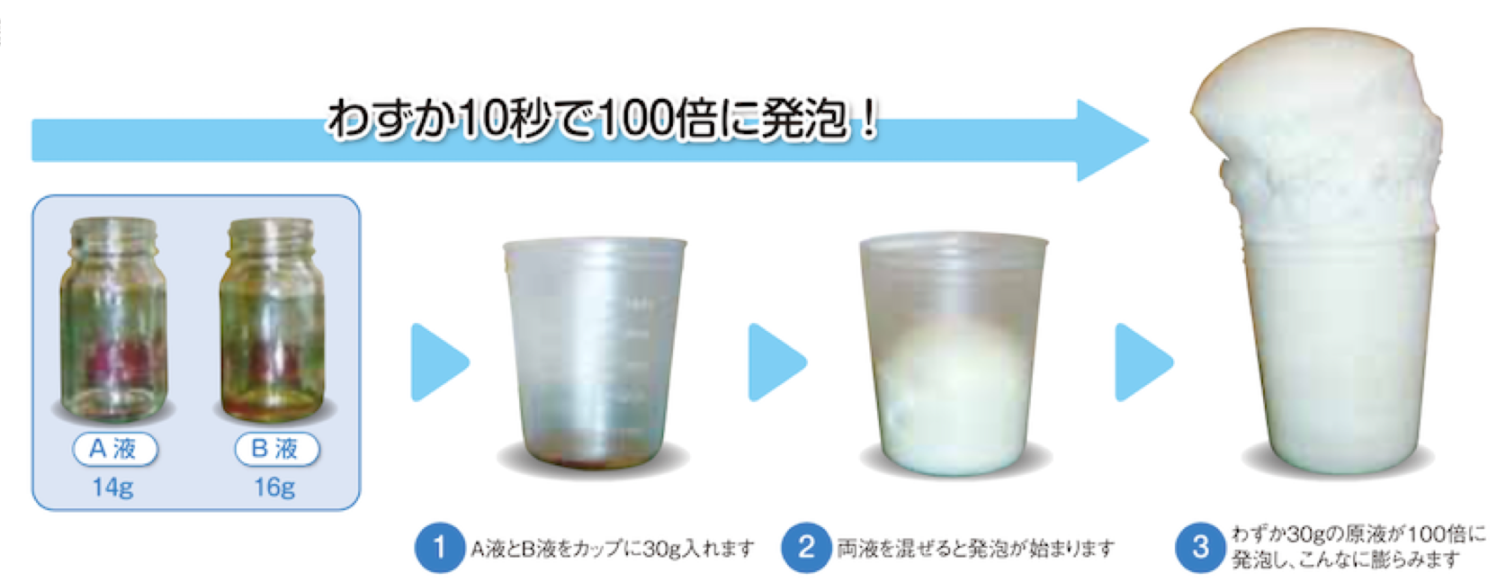 |水で100倍に発泡するMOCOフォーム