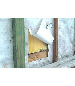 旭川市の建物に施工され、18年経過後のタイベック®ハウスラップ。厳しい風雨や雪の中、断熱材は保護され、ほとんど劣化していません。